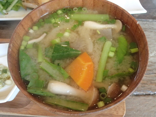 出汁が効いて美味しい味噌汁です。薄味でかなり穏やかな味です。