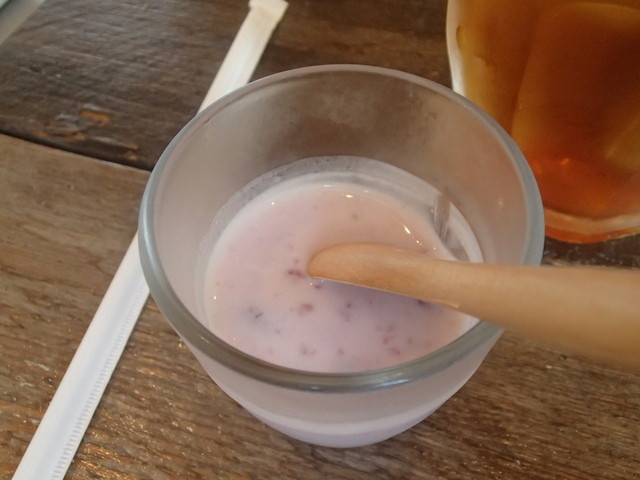 デザートはワンショットグラスに入ったブルーベリーヨーグルトでした。