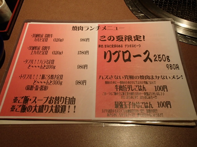 カルビ定食にする。120gだが茨城産常陸牛を使用しているらしい。