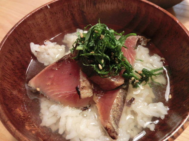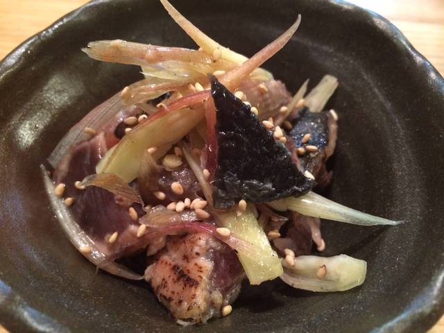 鰹の塩タタキ。薬味いっぱいでいただきました。