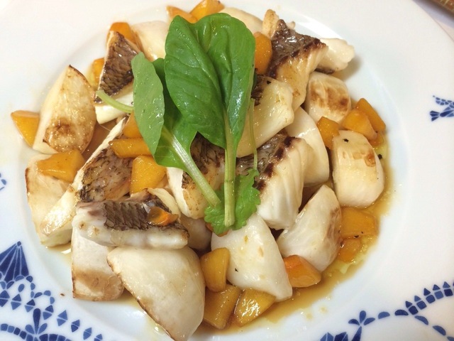 ジャガイモのガレットと金目鯛のクリーム煮。