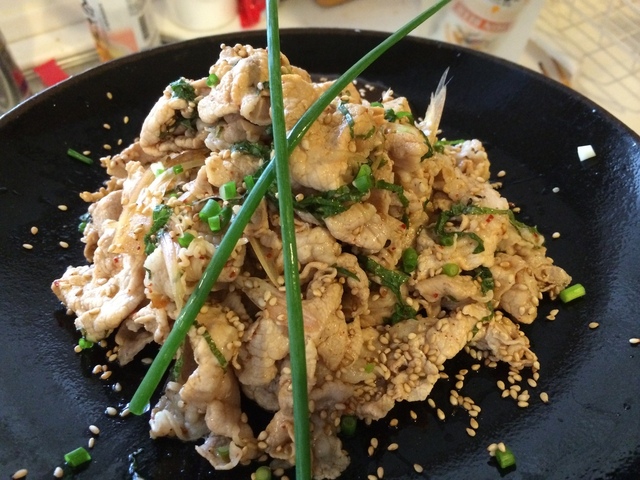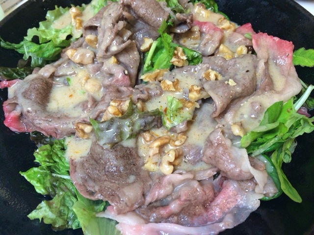 牛しゃぶサラダ、ゴマとクルミのソースで。