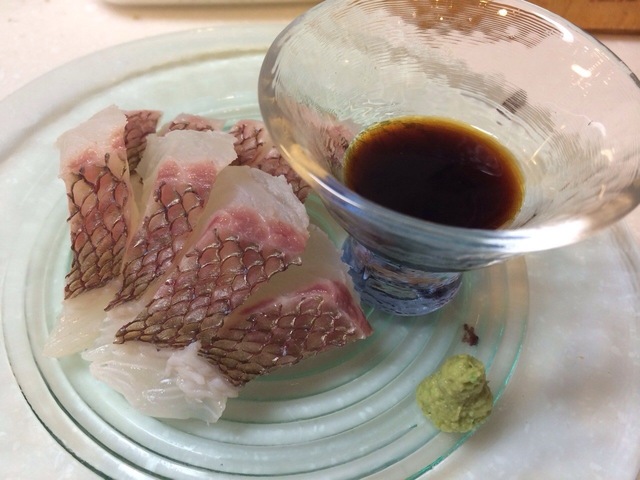 真鯛の皮霜造り。日本酒が欲しくなっちゃいます。