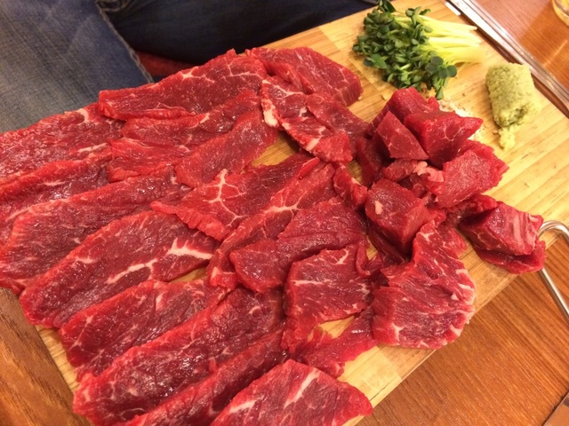 色鮮やかな牛刺!韓国では珍しい本わさびと共に。