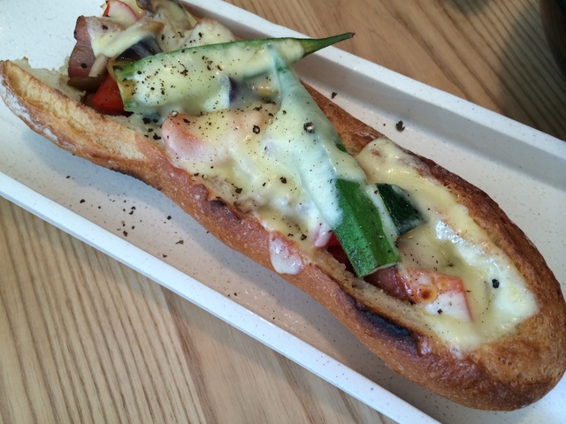 バゲットと焼き野菜。チーズを入れて仕上げました。