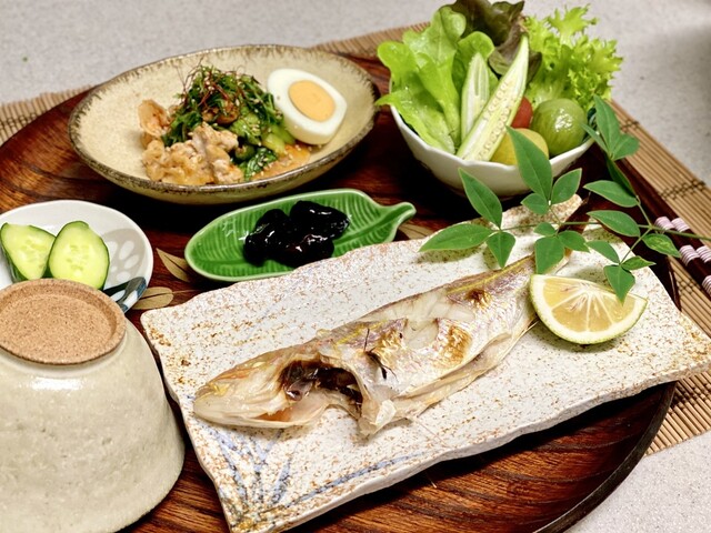 お漬物やフルーツなんぞ付けると品数多いように錯覚。