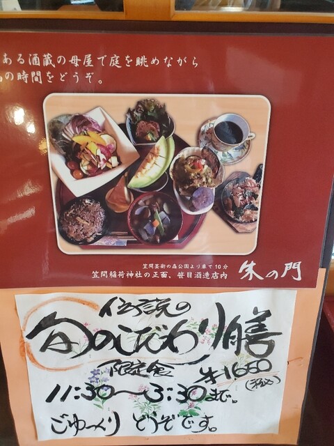 気になっていたカフェに振られて、ランチのできるお店を探していたら前回チェックした【朱の門】さんの前にいました