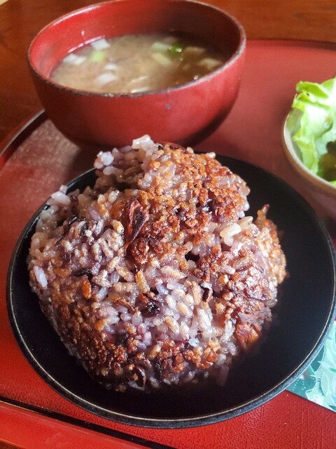 同時に出てきたキノコのご飯は雑穀米(赤米強め)。おこげがカリッカリで絶品です!