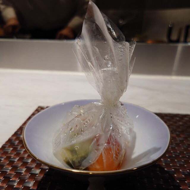 里芋やトリュフをマッシュして、黒毛和牛のしぐれ煮がのっていたり、春菊水菜ねぎが下にひかれている白子や、バターに醤油、白ワインの香りが凄い鮑など、どの料理も絶品でまた美しい。