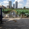 写真左:9月上旬、上野不忍池でお手入れをしていました。