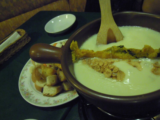 チーズフォンデュ(ノーマルとにんにく) カボチャの土手が美味。