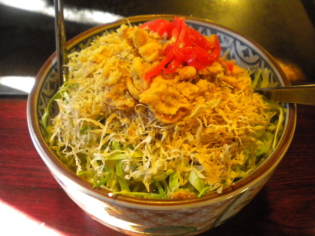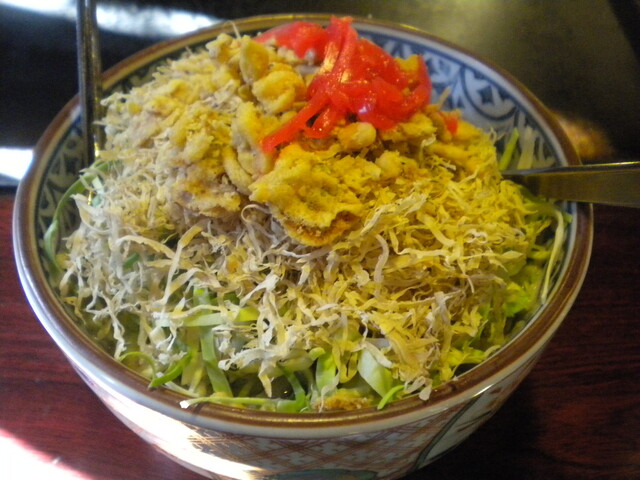 紅しょうが、キャベツ、天かす、切りイカ、ソース
