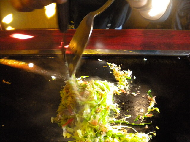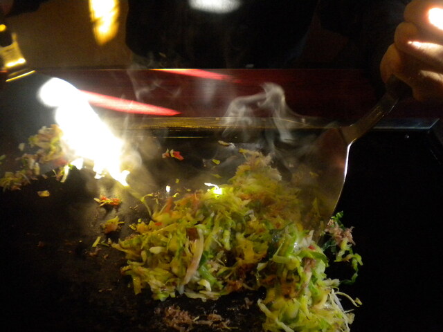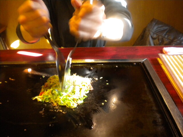 あの味もんじゃ のつくり始め4(ここで集めます)