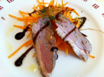 前菜は2種類から選べました。私は鴨肉と人参のサラダをチョイス。