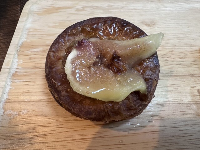 真ん丸デニッシュの中央にカスタードクリーム、トップに2切れのいちじくがのっています。