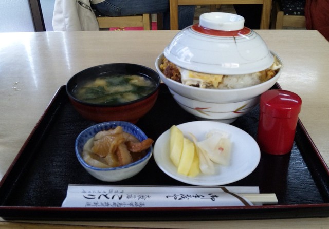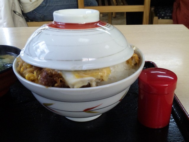 カツ煮:甘い味付け、カツはしっかりとした厚み