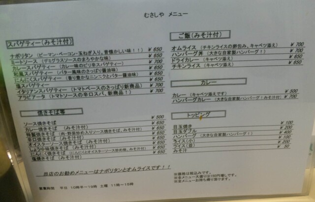 早速メニューを見ると、メニューはスパ、焼きそば、ご飯系、カレーと結構豊富!! (。≖ฺ‿ฺ≖ฺ)ニタァ
