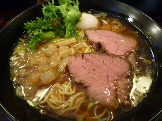 行って見ました。いつもの独歩とはちょっと違う味。お酒のつまみのローストビーフは絶品。美味い。お酒が進みます。が、今日はソバが細めん。すぐにラーメンが目の前に。スープはさっぱりしてますが煮干の遠慮がちな味がしっかり。ローストビーフは美味しかったけど、つまみのビーフの方がソースに合っていて美味かった。