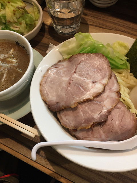 今日も抜群に美味しかったです。いつもの全部のせつけ麺+キャベツ。久々の登録です。次回こそは油そばを注文しようと思います。