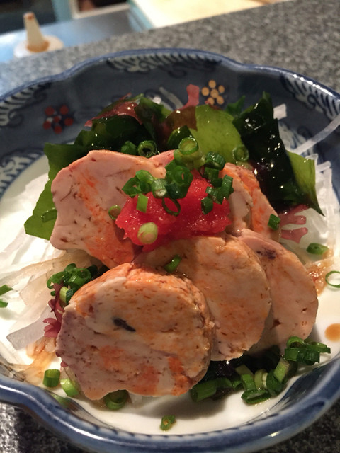 鮟肝をポン酢で食べたくて行って来ました。食べログのお友達からマスター経由で「赤城山」の差し入れが。嬉しいですね。家内とマスターと一杯づついただきました。ありがとうございます。ご本人にご了承を得ていないのでお名前は差し支えさせていただきます。