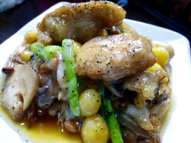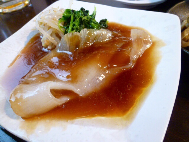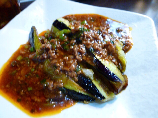 今夜は家内と。美味しい料理を目一杯頂きました。白ナスと鳥軟骨の炒め物。お酒が進みました。