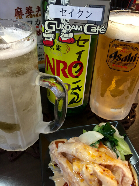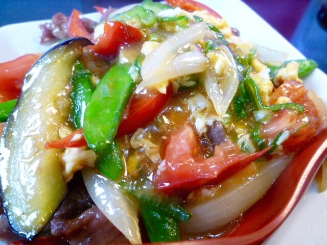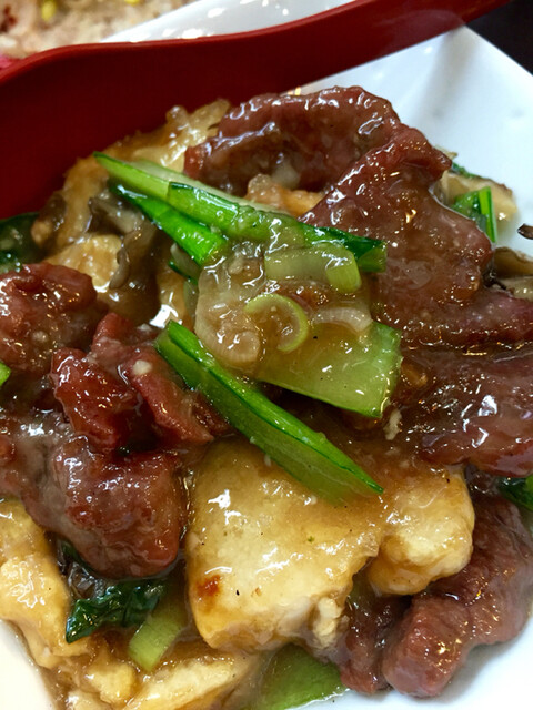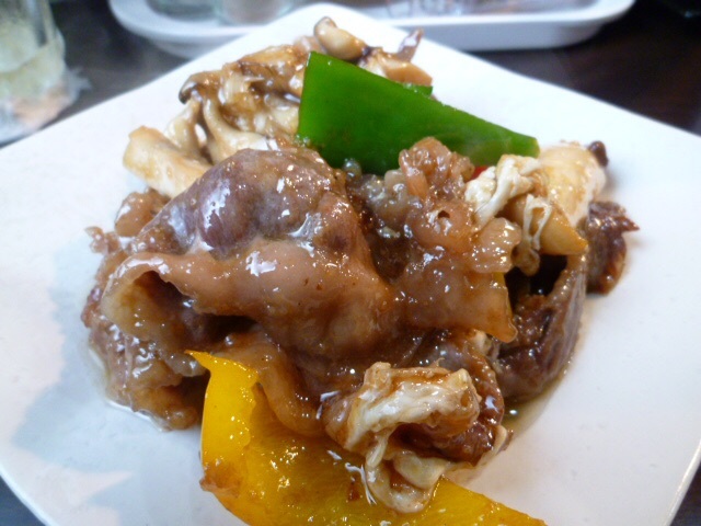 ランチ2件目。軽く飲んで新製品。牛肉とトマトの炒め物。ゆっくりいただきました。きん@東京さんと一緒に飲ませていただきました。