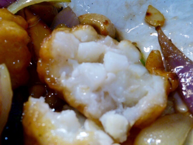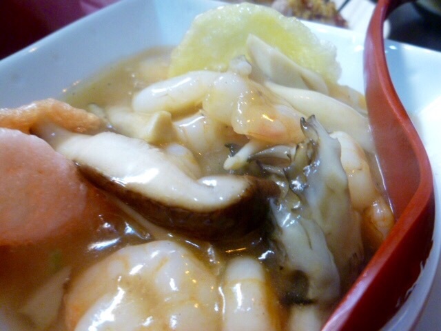 お客様が次から次に。凄いですね。イカ団子。辛くないソースでお願いしました。