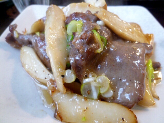 朝からカウンターで眞露を飲みながら待つと店主が牛タンの料理を!びっくりしました。キノコさんたちがたくさん。体にも良いですね。オープンから何回お邪魔したか分かりませんが、お客様に日々愛されるお店作りをしている店主に頭が下がります。来年も多くの皆様に「美味しいーっていう笑顔」をたくさん提供してください。