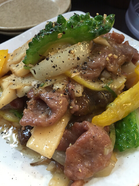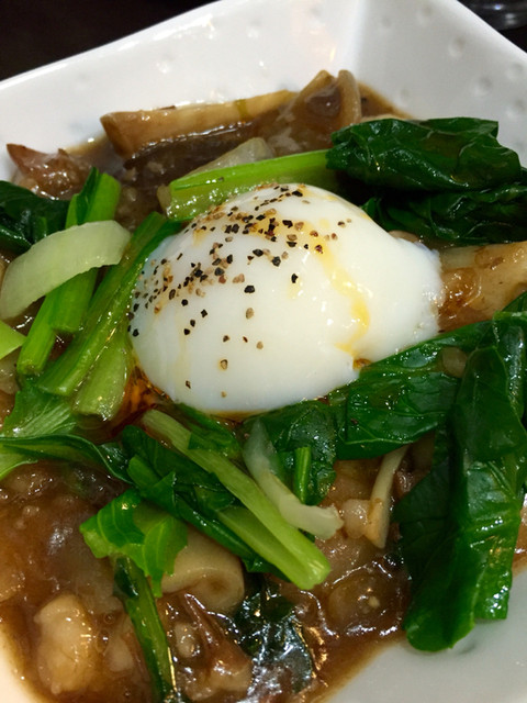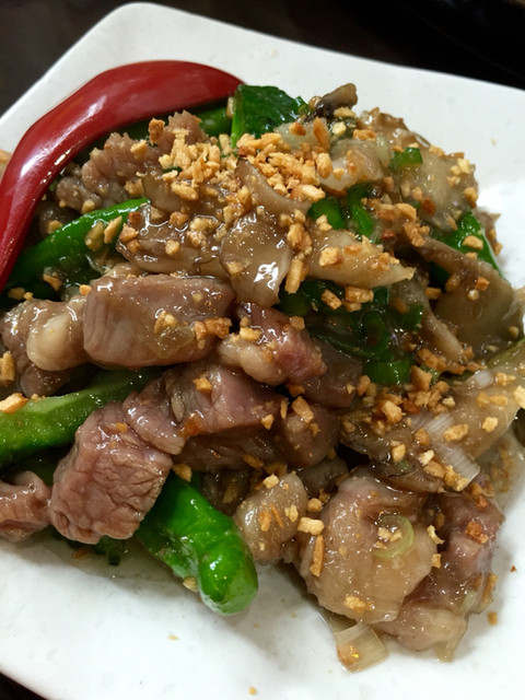 外出先から直帰。一人で寄らせていただきました。珍しく赤星を飲んでからいつもの焼酎。店主から牛肉のお勧め料理を提案され、お願いします。柔らかいお肉と玉子、そしてオイスターの香り。続いてホルモンと野菜の炒め物をリクエスト。熱々の豆腐と野菜の美味しさがベストマッチです。今夜はゆっくり、まったり美味しいお酒と料理を堪能しました。