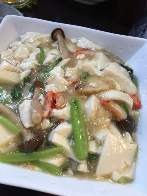 色々頂きました。帰りに、チャーハンとカニと豆腐の煮込みをお土産に。