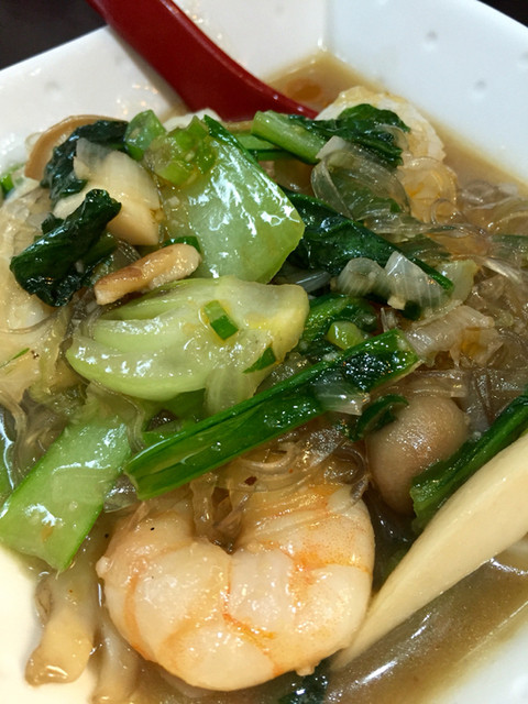 今日は店主に野菜をメインにと。あとはお任せです。出来たてのチャーシュー、海老と野菜の炒め物絶品でした。新メニュー?海老チャーハンは食べ応えがありました。風邪の家内のためにお粥を作って頂きました。感謝。