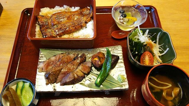 うな重も炭火焼牛肉も食べたい欲張りな人にピッタリなメニューです。