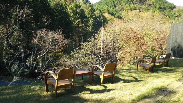 ガラス張りの店内からは天城の山々が一望でき緑から薄茶色に変わ
