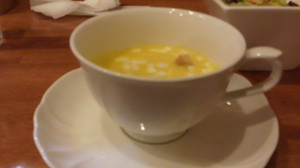 いつものようにサラダとスープ(この日はかぼちゃのポタージュ)が来て