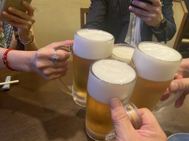 今回は4人でビールやチューハイ,ハイボール,日本酒など16杯ほど飲んで、