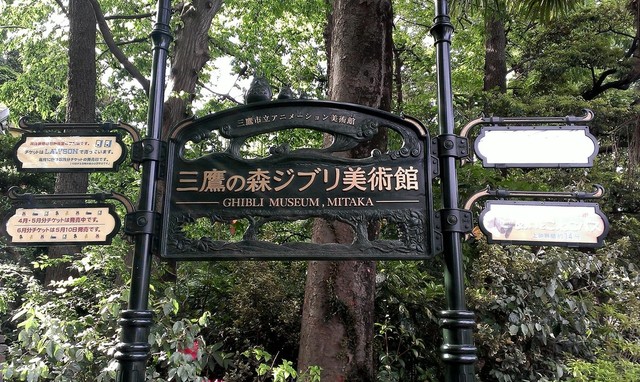 ジブリ美術館の看板です?なかなか重厚な雰囲気です。