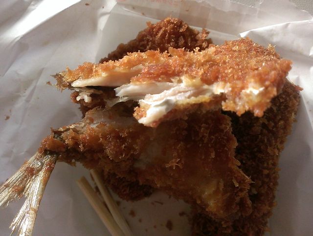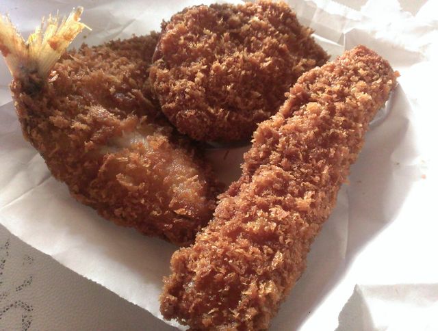揚げ立て熱々のチキンカツ、アジフライ、イカフライ達