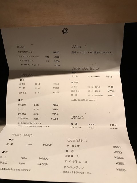 メニューはドリンクのみ