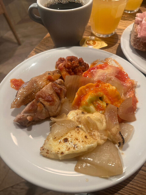 生ハム、サラダ、タマネギグラタン、ペンネ、ラビオリ、タコス…