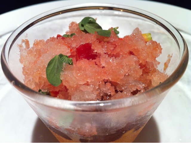 鎌倉野菜 赤ピーマンのムースフルーツトマトのソルベ乗せ