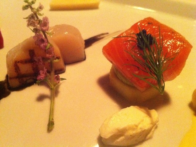 オマール海老のポワレ 帆立貝、ディルサフランブロス