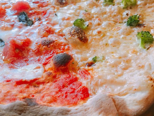 マルゲリータと海老クリームソースのハーフ&ハーフ。