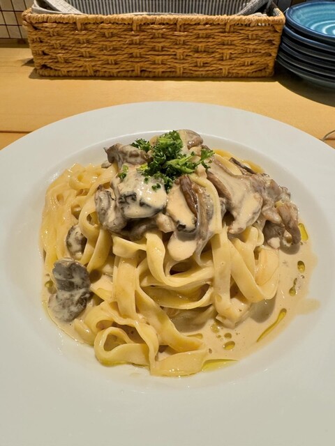 太麺パスタのフェットチーネにクリームソースがしっかりと絡みます。