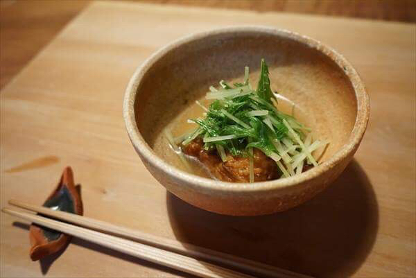お椀、そばがきと牡蠣