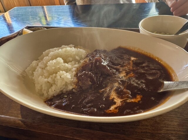 そして牛すじ。こちらは本当に“トロ〜ッ”と口の中でほどけるタイプで、煮込み具合が絶妙すぎる。コク深いハヤシソースと絡むと、もうスプーンが止まらない…!
