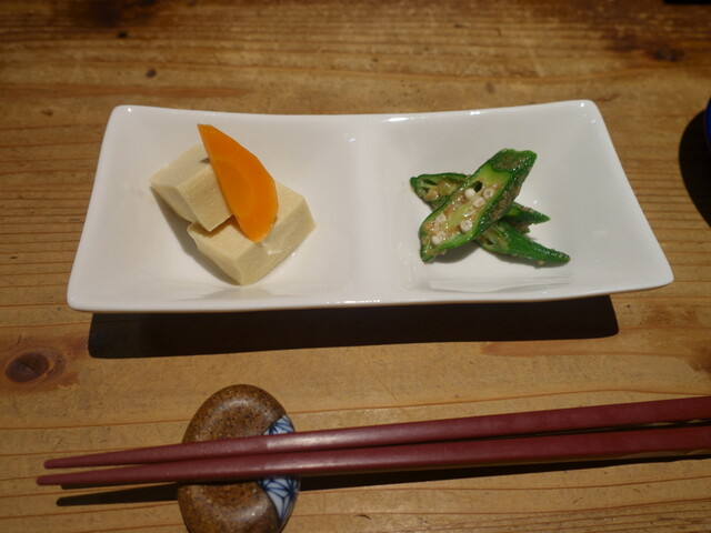 ◇お通し(無花果と冬瓜とオクラの冷製煮浸し)