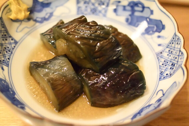 この日は予約をせずに梯子酒の途中で立ち寄りましたが運良くお気に入りのカウンター席が一つ空いていて座る事ができました。ではいつものスタイルでおばんざいをメインに燗酒を楽しみます。