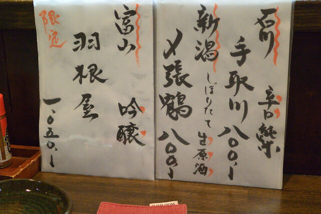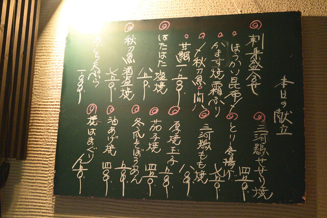 この日は残暑が残る9月上旬でしたが秋の味覚とひやおろしを求めて訪れました。では開店時間と同時に暖簾をくぐり美味しい料理とお酒を楽しみます。