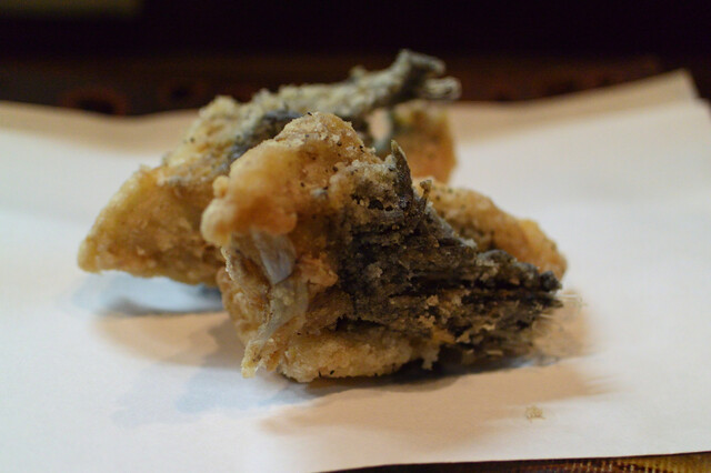 最後に選んだ料理ははたはた塩焼です。じっくりと時間を掛けて焼き上げられ丸かじりで頭から尻尾まで美味しく頂きましたよ。はたはた塩焼は初めて食べましたが脂も乗っていてとても美味しかったですね。付け合わせの田楽里芋は愛知県新城市で収穫された「八名丸里芋」を使い粘り気が強くとても美味しい里芋で大好きな食材が頂けてラッキーでしたよ。