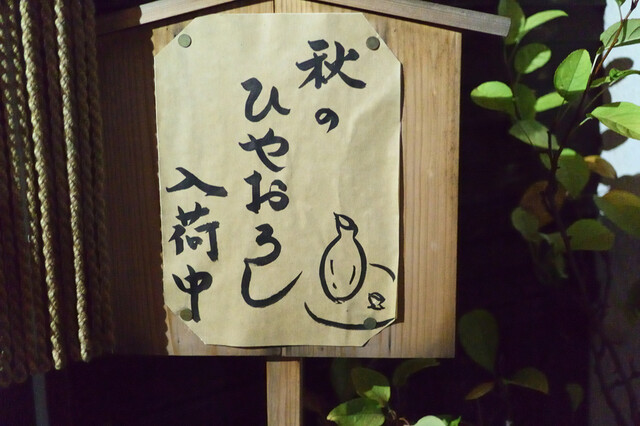 この日は秋の味覚とひやおろしを楽しみに伺いました。先日フラりと立ち寄ったら満席でしたので今回はしっかりと電話にて席を確保して訪れます。